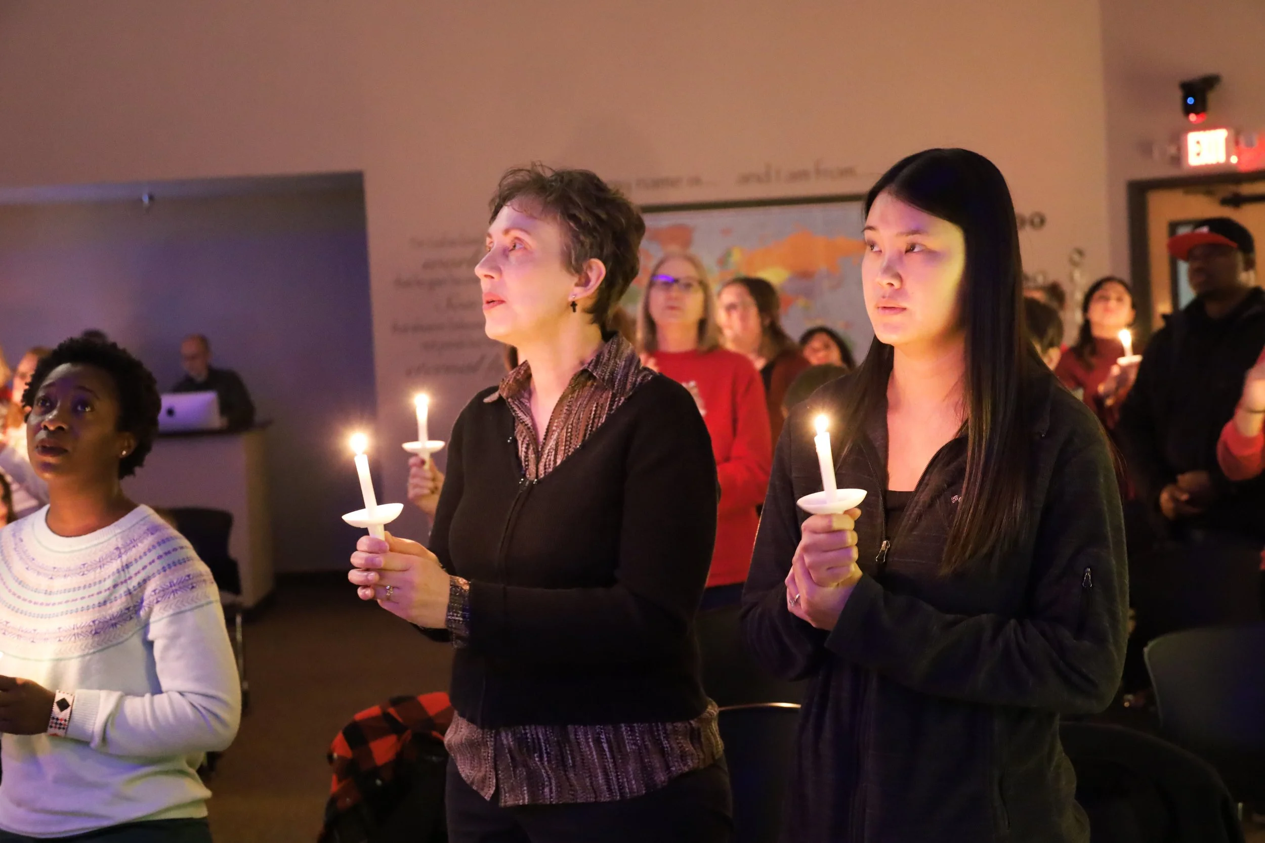 One of our favorite traditions—standing together as the room fills with warm light, reminding us that God’s love still shines in the darkness.